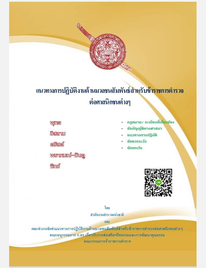 แนวทางการปฏิบัติงานด้านมวลชนสัมพันธ์สำหรับข้าราชการตำรวจ ต่อศาสนิกชนต่างๆ