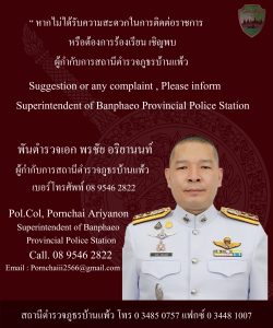 ช่องทางแจ้งเรื่องร้องเรียนการทุจริตของสถานีตำรวจภูธรบ้านแพ้ว